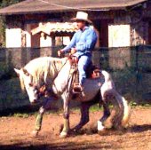 | "Urano del Delta" e Fabio Il miglior binomio del centro Italia Da anni gareggiano insieme, la loro specialitą la gimkana, i loro risultati per due anni consecutivi:1°in cat.B e 2° in cat.A nel "Trofeo di abilitą a cavallo" di Massimo Grillini. Urano, castrone nato nell'86, č stato il primo Camargue di Fabio. Con lui č cominciata la passione sfociata nell'addestramento di numerosi soggetti, fino all'ultimo arrivato "Slide Jin". |
